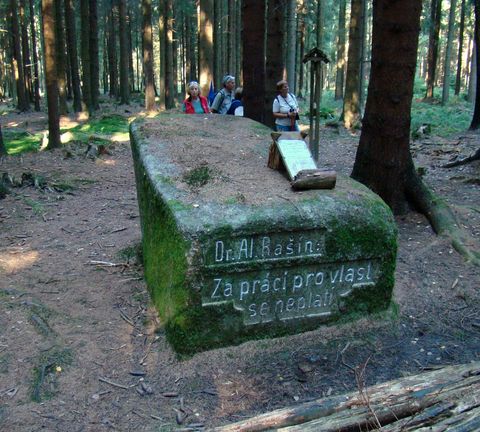 Alois Rašín (1868–1923), první československý ministr financí, tvůrce naší prvorepublikové tvrdé měny, ekonom a politik, jezdíval do České Kubice na prázdniny a u tohoto kamene se jako u stolu zastavoval na svačinu (Na začátku roku 1923 se stal Rašín obětí atentátu.)