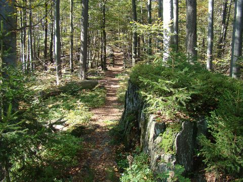 U studánky začíná modře značená Hanova cesta, nazvaná po prvním předsedovi KČT Domažlice, prudce stoupat na hřeben a nám se plní dlouholetý sen. Ještě pár kilometrů a staneme na nejvyšší hoře Českého lesa, téměř sto kilometrů dlouhého horského pásma, které se rozprostírá od Všerubského průsmyku k Dyleni na Chebsku.