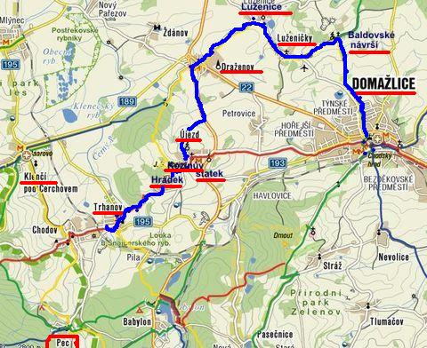 Trasa: Domažlice – Baldovské návrší – Luženičky – Luženice – Draženov – Újezd – Hrádek – Trhanov = 20 km
