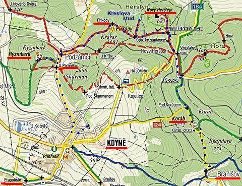 Trasa: Branišov – Koráb – U Sloupku – Vejpřahy – Nový Herštejn – Kreslova studánka – Příkopy – Rýzmberk – U Pomníku – Kdyně = 11 km