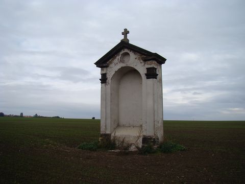 Prošli jsme napříč polem, neboť jsme asi na délku Karlova mostu uviděli kapli č. 15, zvanou Kájovská.