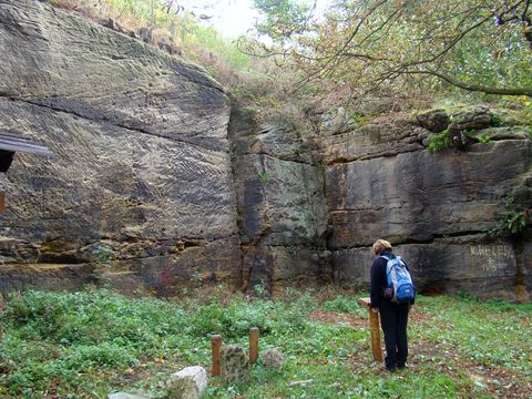 Zde ve Vinoři jsme se napojili na členitou červeně značenou cestu, po které vedla i naučná stezka do Jenštejna, a tak jsme se dostali do krásné oblasti skal na výrazném hřebeni, pod nímž se leskla hladina rozlehlého rybníka Velké Obůrky.