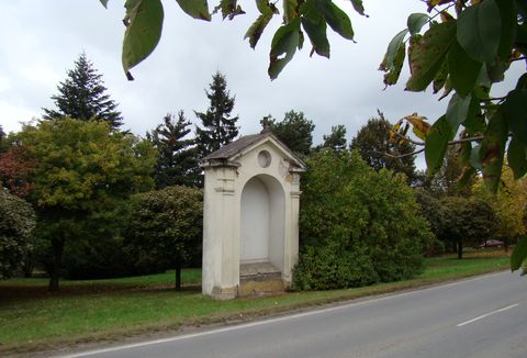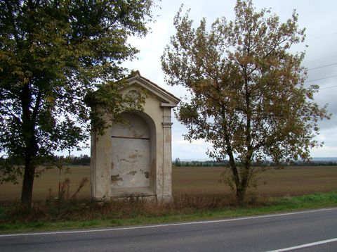 Po silnici přicházíme do Dřevčic a hned na okraji vsi nás vítá kaplička,