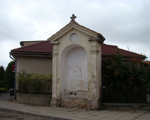 Poslední kaplička, označovaná číslem 42 a nazývaná Vyšehradská, pro nás dneska už šestnáctá v řadě, je zabudovaná ve zdi u silnice.