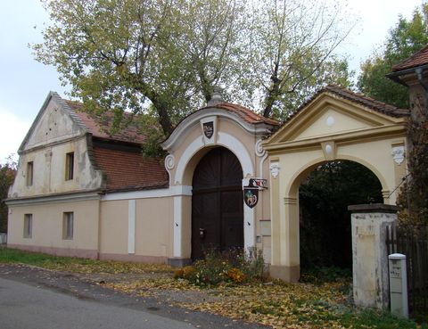V Dřevčicích nás zaujaly barokní portály rozsáhlého objektu, který se pyšní letopočtem 1052 a nápisem Villa Dreucici. Stávala prý zde od 14. století tvrz.