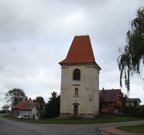 Nedaleko je opravená třípatrová zvonice z konce 17. století, s nádhernou sochou sv. Floriána ve výklenku.