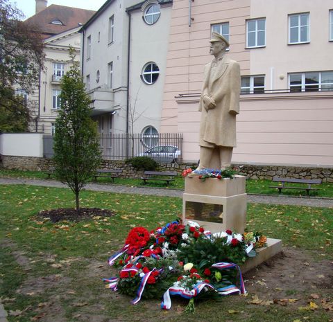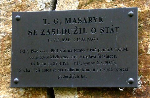 12. září 1948 byla před jihlavským gymnáziem za účasti tří tisíc Jihlavanů odhalena Šlezingerova socha našeho prvního prezidenta, patrně poslední, která byla v zemi, už sevřené komunistickým jhem, instalována.