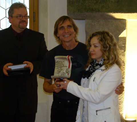 Děkuji paní Míše i panu Mirkovi za všechno to nadšení, které na dálku se mnou jistě sdílí náš drahý Karel. Vždyť bez něj by Stříbrná a Zlatá bula nemohla být předána v tak kouzelném prostředí a s tak báječnými lidmi, jako jsou zejména bratři Reynkové, manželé Poukarovi a Bára Kolmanová s Vladimírem Mátlem.