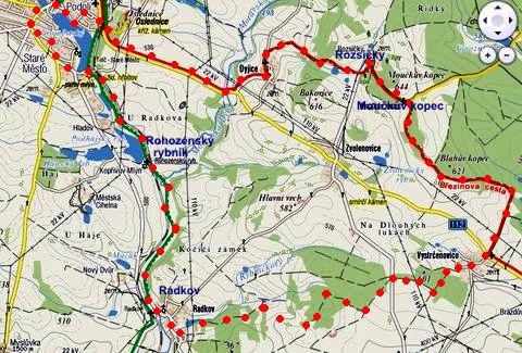 Trasa: Telč – Dyjice – Rozsíčky – Vystrčenovice – Radkov – Rohozenský rybník – Telč = 21 km