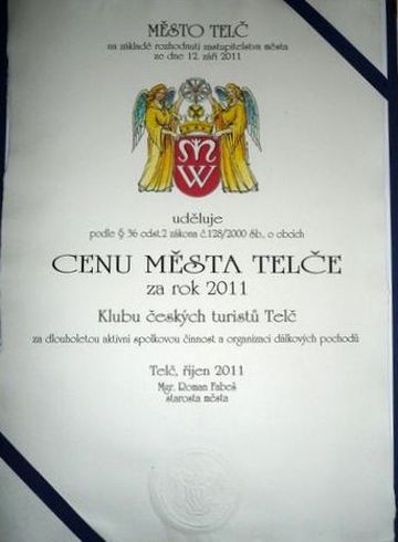 S potěšením uvádím, že jeden ze členů telčského odboru KČT, Jiří Taras, byl už v roce 2006 vyznamenán Cenou města Telče za vynikající reprezentaci ve výkonnostní turistice – jeho tisíce najetých kilometrů na kole nechávají daleko vzadu za sebou všechny případné soupeře.