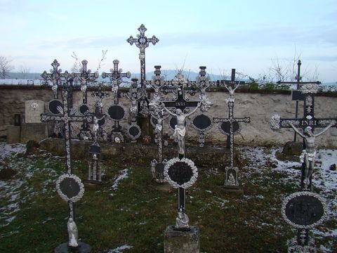 Povznášející byl pohled přes nízkou hřbitovní zídku do krajiny na věnec kopců, kopečků, pahorků, vrchů, vršků a vyvýšenin zalesněných či holých, ale i přímo vedle nás byl nevšední háječek: