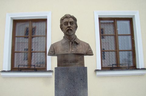 Celou budovu můžete vidět v článku z naší první cesty, dnes zařadím bystu spisovatele Raise, v jehož rodném Bělohradě jsme pobývali v roce 2008 na Letním turistickém srazu