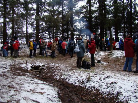 Plni dojmů jsme ťapkali nahoru do lesů, k prameništi sličné řeky Chrudimky. Cestou jsme potkávali známé, všechny jsme rádi viděli, ale rozradostnila nás Míla Pondělíčková, která měla sebou višňovku „potkávačku“. (Ten den jsme ji potkali několikrát, mňam…)