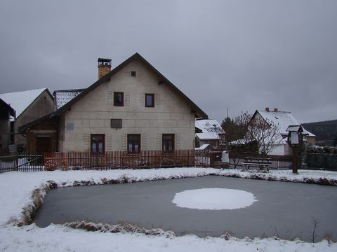 Na druhém konci vsi je stavení, ve Slavíčkových časech výměnek na Volákově gruntě, kde krajinář se svou rodinou bydlíval po tři roky.