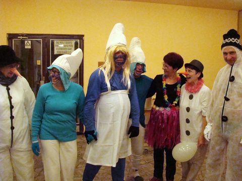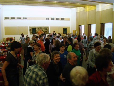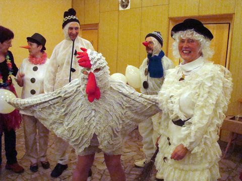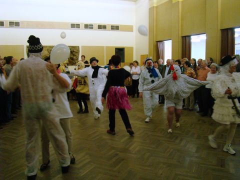Účastníci veselice očekávají pokaždé malé překvapení – letos je pro nás uchystali turisté z Třebíče – během večera se převlékli do různých kostýmů, takže sálem kroužili sněhuláci, šmoulíci, exotické tanečnice, nádherná slepice, Jů i Hele.