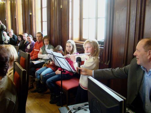 Kristýnka Koubská z oddílu hněvkovických tomíků překvapila a potěšila shromáždění hrou na flétnu a vysloužila si nadšený potlesk,