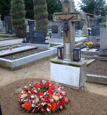 Sem, k ostatkům svých rodičů a sourozenců, jejichž jména jsou na mramorové tabuli už téměř nečitelná, bylo uloženo tělo Gabriela Floriana, jeho duše se s nimi setkala na věčnosti.