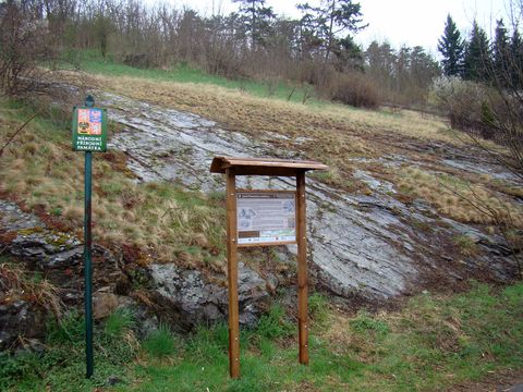 Na informační ceduli stojí, že před půl miliardou let bylo území Čech a Moravy mikrokontinentem Perunika a ten zalilo na sto miliónů let moře, na jehož dně právě stojíme… K nepochopení…