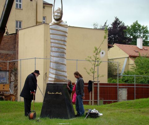 Už v roce 2009 předal sochař Jan Koblasa do umělecké dílny ve Ždánicích sádrový model Mahlerovy sochy v měřítku 1:1. Pracovníci slévárny i pan profesor Koblasa tehdy novinářům popisovali, že pohyby s třímetrovou sádrovou sochou nejsou jednoduché a bez pomocné techniky jsou nemožné.