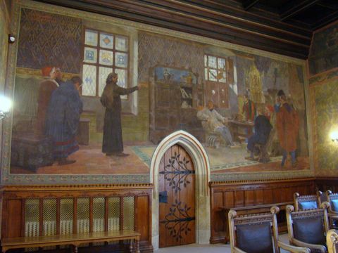 Královská audienční síň byla po přestavbě přeměněna v reprezentační sál a kolem roku 1900 vyzdobena malbami, zpodobňujícími významné události, které se zde odehrály v 15. století. Pro nás Jihlavany je potěšení dozvědět se, že zdejší malby provedl rodák z nedaleké Polné, Karel Ladislav Klusáček (1865–1929) – výjev nazvaný Vydání Dekretu kutnohorského přibližuje událost z 18. 1. 1409, kdy zde Václav IV. podepsal dokument, omezující vliv cizinců na pražské univerzitě,
