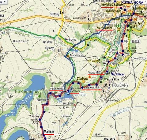 Vydali jsme se po ČTZ z Kutné Hory do Malešova, což je podle směrovníku 7,5 km. Kaňon Vrchlice má délku asi tři kilometry a pro svoji atraktivnost slouží jako vycházková zóna obyvatel Kutné Hory. Ve středověku byl čtyřicetimetrový výškový rozdíl oproti okolní krajině využíván k snadnějšímu přístupu k rudním žílám a zároveň zde byla přirozená cesta pro odtok důlních vod, dodnes tu uvidíme vchody do několika štol.