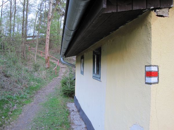 Z rantířovského katastru jsme se pomalu proznačkovali až ke Dvorcům; na obrázku je chata hodných lidí, kteří i při opravě venkovních stěn zachovali značku umístěnou na rohu stavení – chvála jim!