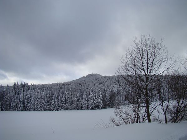 Holinu, kde stával Nový Brunst, jsme si prohlídli z rozhledny na Pancíři, teď jsme obdivovali Pancíř, který, viděný z této lokality, je okouzlující v létě i v zimě.