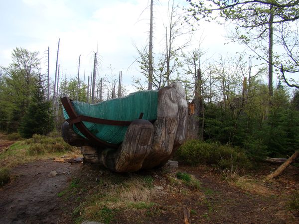 My jsme ovšem měli namířeno pár kilometrů na sever, k horské obci Waldhäuser, jež vznikla v 16. století na Zlaté stezce vedoucí do Kašperských Hor, a nám nyní sloužila jako východiště cesty na Luzný. Na ten balvanitý vrchol na hranici Bavorského lesa a Šumavy, na který jsme plni touhy naposledy koukali z Březníka v červenci 2011 a slibovali jsme si, že při první dobré příležitosti se z něj musíme podívat na březnickou hájenku, na místo, které považujeme za jedno z nejhezčích na Šumavě. A teď byl vrchol od nás jen pár kilometrů a navíc jsme si na přístupové stezce, kterou pro nás Maruška vybrala, mohli ještě prohlídnout skleněnou Archu, vytvořenou německými a českými umělci.