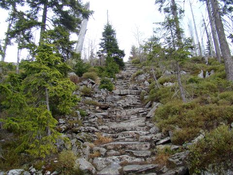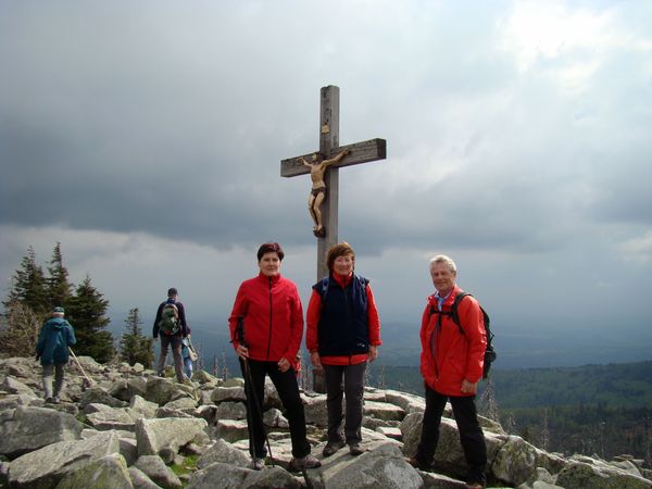 Pak jsme se přece jen rozkoukali, ale z obdivovaného kruhového rozhledu nebylo nic. Přesto však jsme navštívili všechny čtyři oddělené skalnaté vrcholy Velkého Javoru – Großer Arber, Bernstein, Richard Wagner-Spitze a Ostspitze – v mlze měly vzhled, jenž mi připomínal stvoření světa a já jsem si ten podmanivý pohled odnesla pro doby příští.