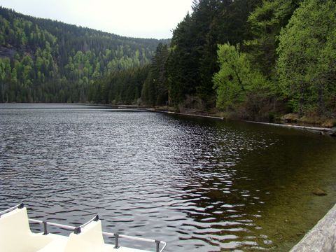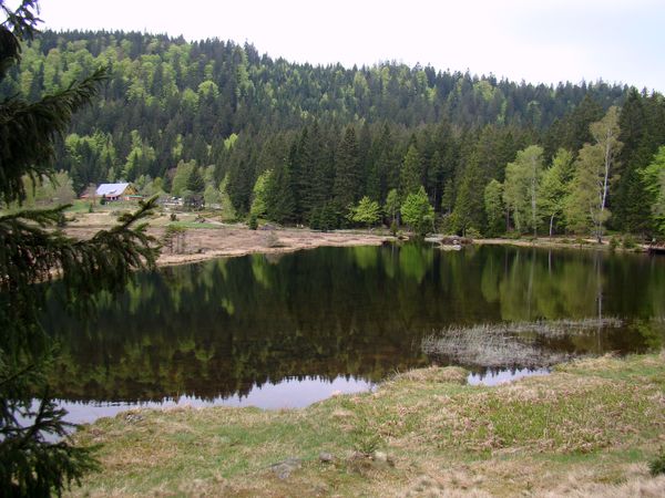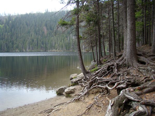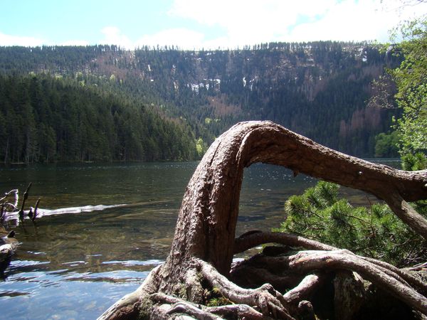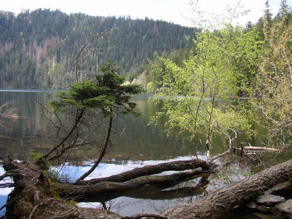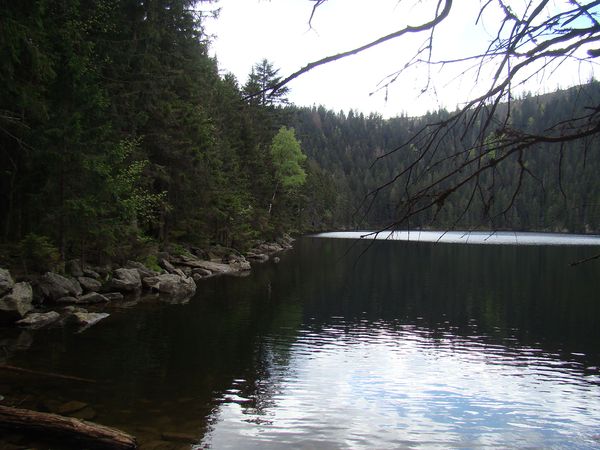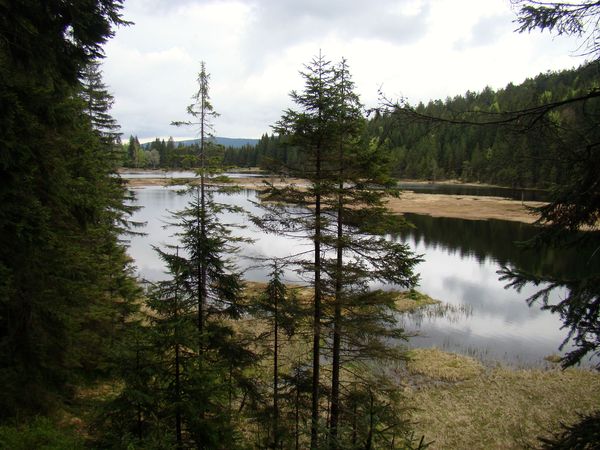 Po červené TZ jsme došli k Černému jezeru, největšímu z pěti ledovcových u nás (v Bavorsku jsou tři, dvě jsme včera viděli), které je spolu s Čertovým jezerem také vyhlášeno Národní přírodní rezervací.