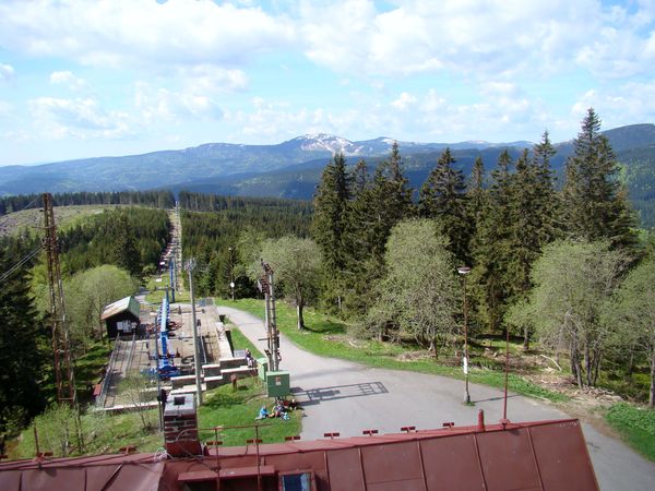K Špičáku mě váže mimo různých turistických, lyžařských na sjezdovce z Pancíře nebo modré špičácké a různých společenských a i naprosto nespolečenských, významný zážitek. Vyhnali mě takhle jednou dopoledne, pojď něco uvidíš. Vysupěl jsem nahoru a to mi bylo cca 24-5 a já v dáli na chvíli zíral na něco neskutečně vysoké a zubaté, byly to kapitalistické Alpy, zatoužil jaksem jednou se tam podívat a tak jen co to jde /teď už spíš nejde, mažu do tirolského Schwaz, kde mám vždy připravenou postel a boží domácí máslo na domácím chlebe.
