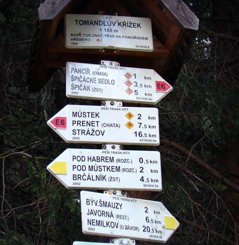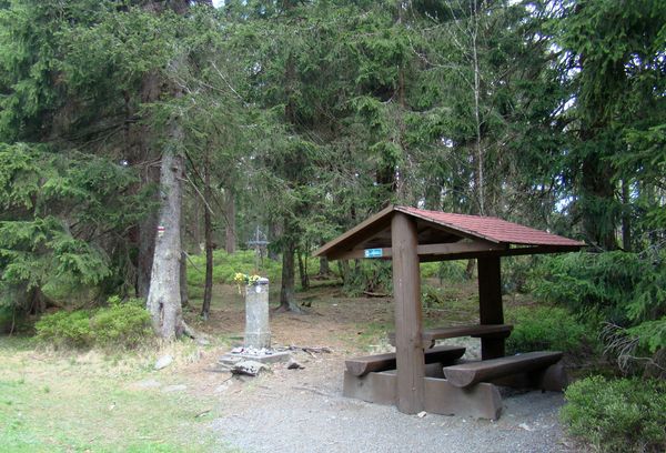 Po červené TZ jsme pokračovali na rozcestí Tomandlův křížek, kde je místo původního kamenného nový litinový křížek