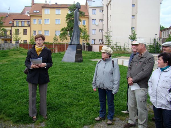 která požádala manžele Poukarovy, aby položili, stejně jako loni 17. května 2011 v předvečer 100. výročí úmrtí dirigenta a skladatele Gustava Mahlera k pomníku květiny, letos věnované turisty z odboru KČT Čeřínek.