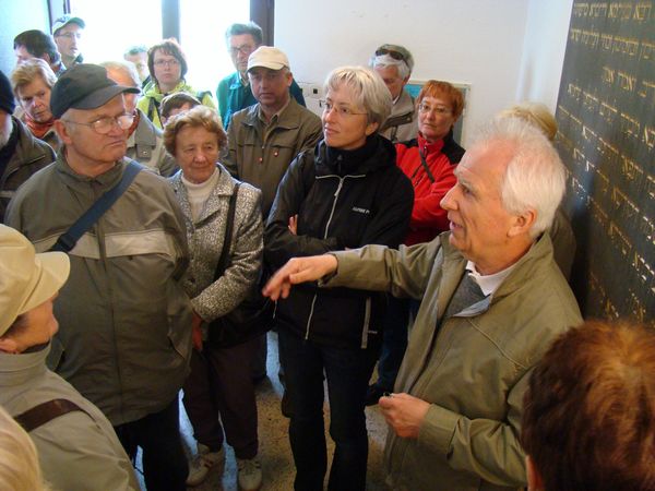 Svůj výklad o historii jihlavských židovských rodin dokončil pan Vilímek v obřadní síni hřbitova před dokumenty, jež jsou součástí výstavy, pořádané k 70. výročí prvních transportů Židů z Vysočiny. Dozvěděli jsme se, že z naší oblasti bylo odvlečeno téměř 1400 osob, z nichž se vrátilo pouze pár desítek. (V únoru 2010 jsme navštívili synagogu v Třebíči, ve článku najdete další informace.)