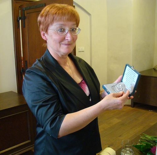 Měli jsme příležitost zúčastnit se v roce 2010 předávání Ceny města Jihlavy manželům Poukarovým, a tak jsme objevili, že medaile letošní je jiná nežli byla jejich. Později jsem zjistila, že akademický sochař Michal Vitanovský udělal návrhy čtyři a medaile se střídají. Nemáme my štěstí na úžasné přátele, můžeme-li porovnávat jejich vzácné medaile?