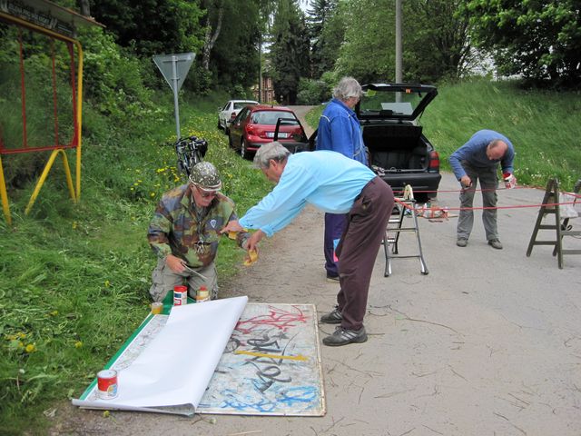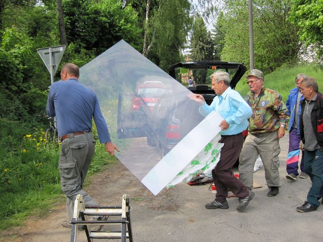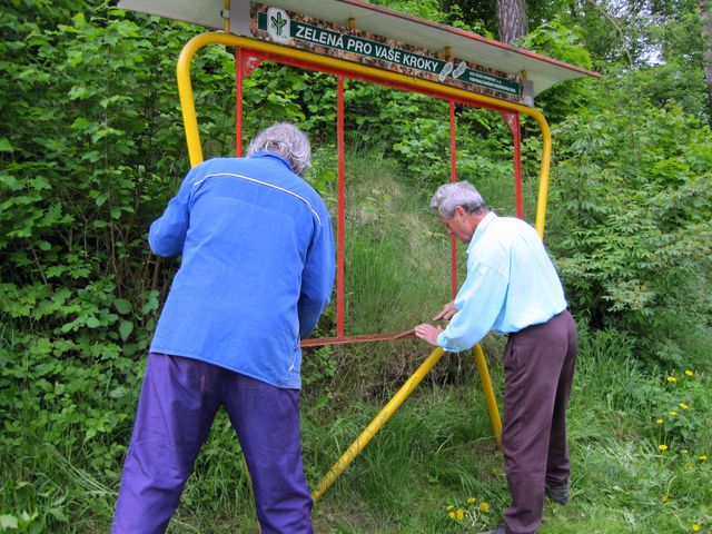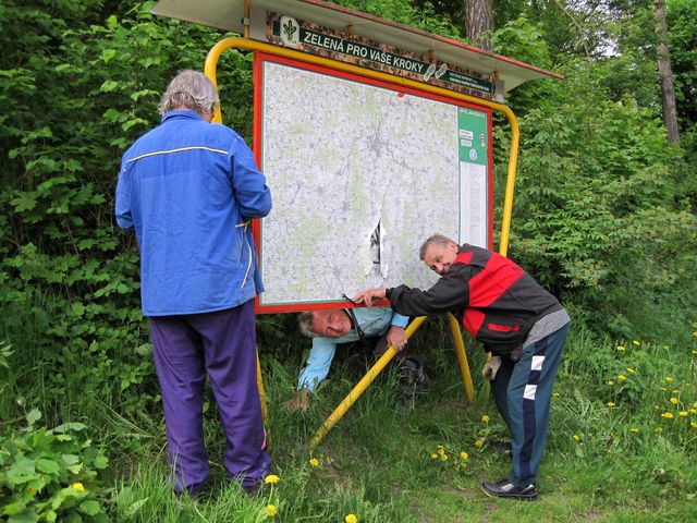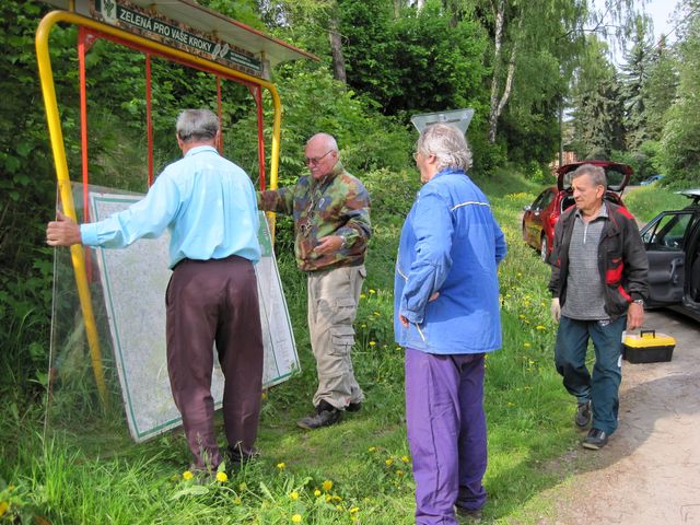 A nebyl by to precizní Ivan, aby nám předem nerozdal psaný dokument s názvem „Návrh postupu výměny vývěsní turistické mapy a instalace A-P krycí desky do stojanu (rámu)“ – nahlédla jsem do oddílu nadepsaného: „Postup prací rozložený do jednotlivých úkonů“ a klesla jsem na mysli – je tam bezmála čtyřicet bodů!