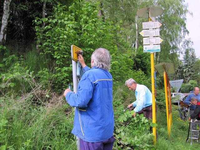 Letos máme za sebou šestou sezónu obnovy pěšího turistického značení ve značkařském obvodu Jihlava. Vedoucí Ing. Ivan Bohatý usoudil, že je vhodná doba zaučit nás v další práci, kterou musí značkaři vykonávat – výměna turistických map. Svolal tedy nás pět uchazečů, abychom tento akt absolvovali pod jeho vedením a vybral mapu v Rantířově, v níž zela rána, kterou jí zasadil nějaký silák bez mozku.