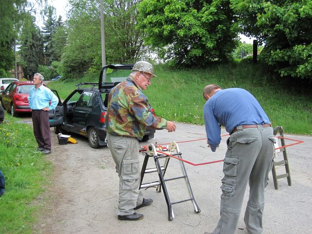 Premiéru máme za sebou a já nabízím zjednodušený obrázkový postup, na kterém jsem zachytila při práci čtyři adepty (Jirka Fuxa, Láďa Záboj, Vašek Plánka a Mirek) se školitelem Ivanem; mně roztomile řekli, ať se dívám a na vyzvání sem tam něco podám, přidržím…