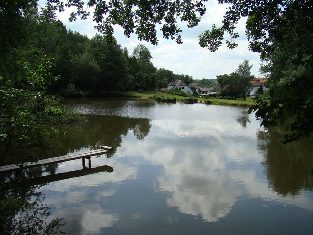 Samozřejmě jsme slzy neronili, leč po krátkém čase jsme neměli ke lkaní daleko – velmi členité břehy Doberského potoka se stezkou, téměř ztracenou v náletových dřevinách a obřích kopřivách, byly k tomu dostatečným důvodem. Hrdinně jsme zanedbanou část cesty překonali a se zalíbením a úlevou se zahleděli na rybník, do něhož ten proradný potok ústí.