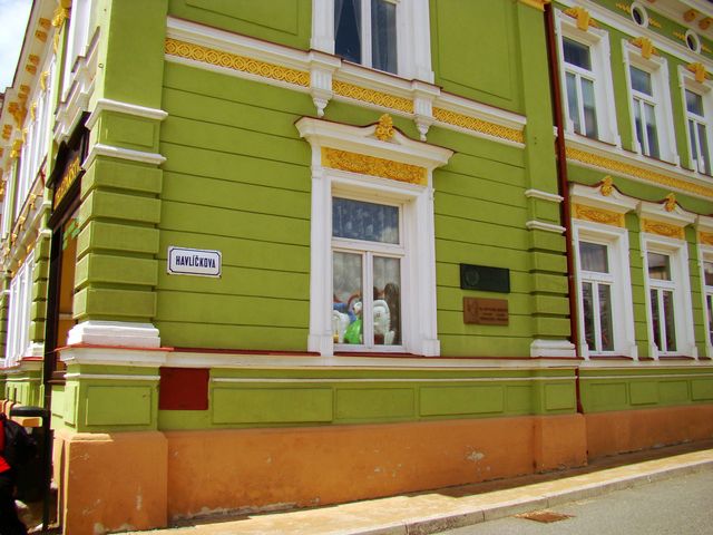 V Přibyslavi mi padl do oka velmi barevný honosný dům se dvěma pamětními deskami –