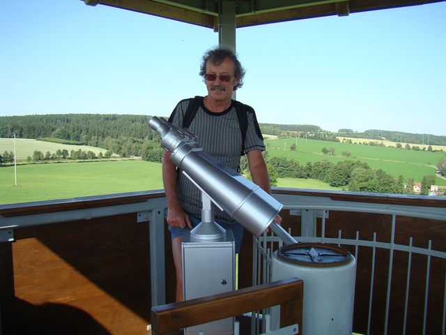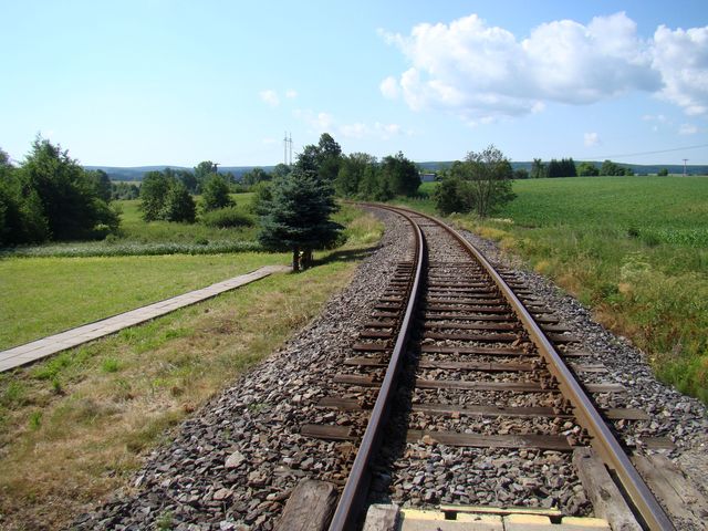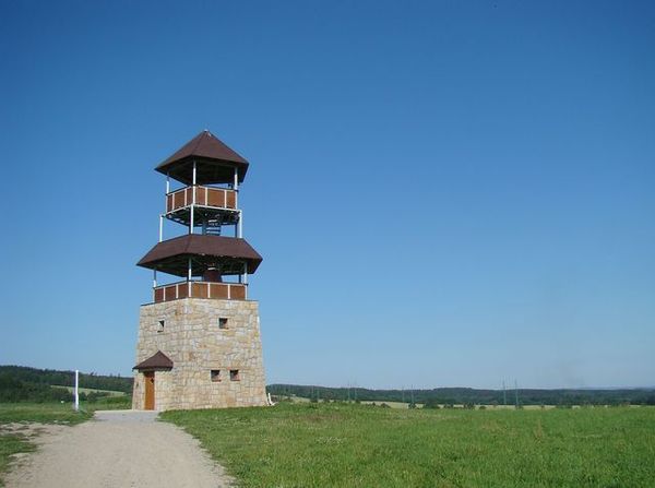První zastávkou byla Vojtěchovská rozhledna, vonící dosud novotou (provoz zahájen v létě 2010), jež lákala možností vystoupit v průzračném letním ránu blíž obloze a rozhlédnout se po otevřené a rovinaté krajině.