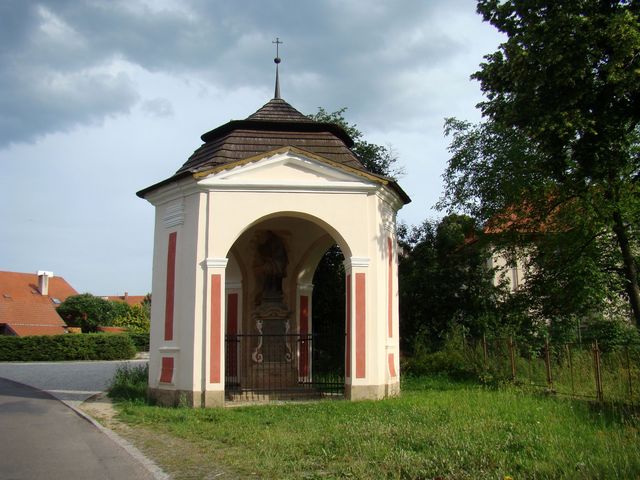 Vrcholem umělecké nabídky tohoto městečka pro mne bylo zastavení před Kalvárií z roku 1763 – po stranách Krista na kříži jsou sochy sv. Josefa a sv. Jana Nepomuckého.