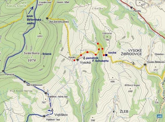 Letní turistický sraz se letos konal v líbezném kraji pod Králickým Sněžníkem, naše cesty vedly po návrších a hřebenech v okolí Starého Města a já jsem se několikrát s lítostí zahleděla na Sráznou (1074 m.n.m.), pod níž leží vesnička Vysoká, kolébka rodu, z něhož vzešel hudební skladatel Franz Schubert. Vzdálenost od Starého Města a okolnosti nám totiž nedovolily pěšky do Vysoké dojít.