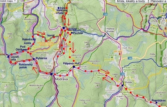 Trasa: Borová Lada – Kvilda – Modrava – Rybárna – Roklanský potok – Javoří pila – Pod Oblíkem – Tříjezerní slať – Pod Oblíkem MTZ – Hakešická cesta – Vchynicko-Tetovský kanál – Antýgl – most – ČTZ – Hálkova chata – most – Pechler ŽTZ – Filipova Huť – Kvilda – Borová Lada = 56 km