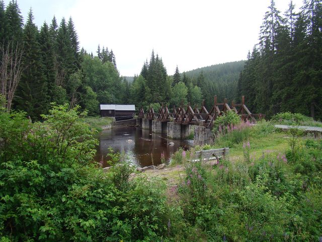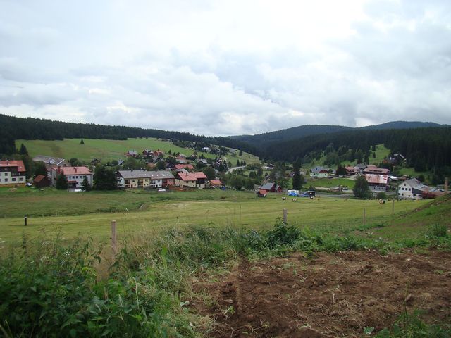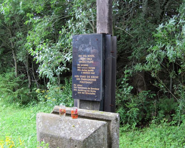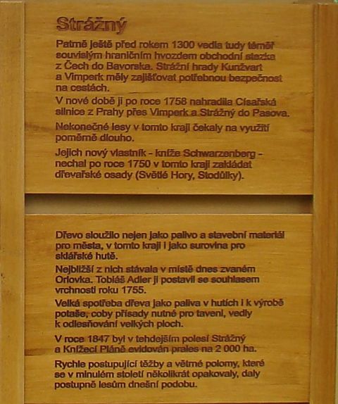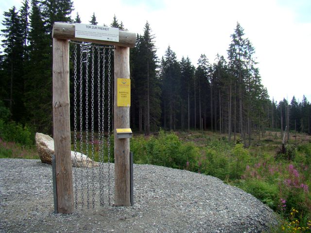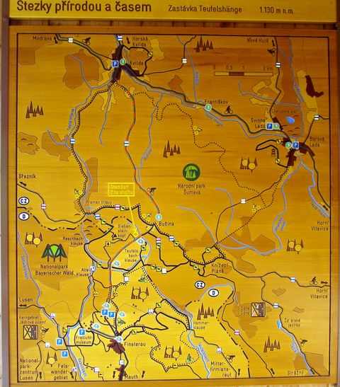 České Žleby (949 m) jsou nejvýše položenou obcí jižní částí Šumavy, tak si dovedete snadno představit, že jsem kus cesty šla pěšky a kolo mi bylo spíše příteží :-). Zato však jsem si všímala tabulí, které každou chvíli upozorňovaly, že tady a támhle, i zde, bývaly obce. Vedla tudy totiž Zlatá stezka z Pasova, historicky doložená od počátku 11. století, ale trasa se prý zřejmě používala už v pravěku.