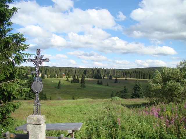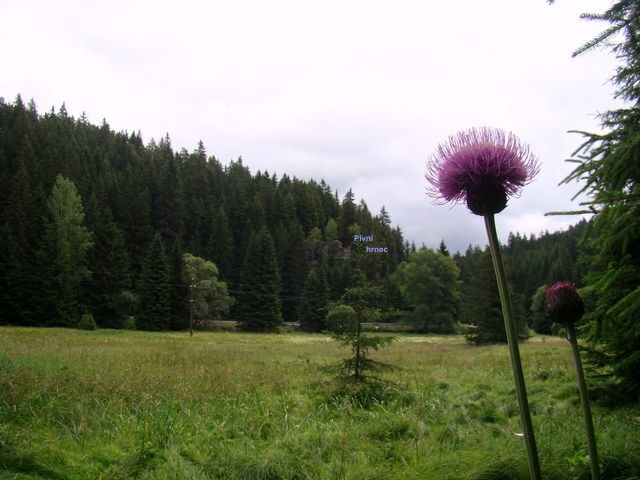 Nedělní ráno 15. července bylo zachmuřené a nenaladěné, přesto jsme se sveřepě vydali známou silničkou osm kilometrů na Kvildu, zastavili u pomníčku převaděčů a pokochali se pohledem na skálu zvanou Pivní hrnec. Podrobnosti o tomto i některých dalších místech najdete spolu s obrázky ve článku z minulého léta.