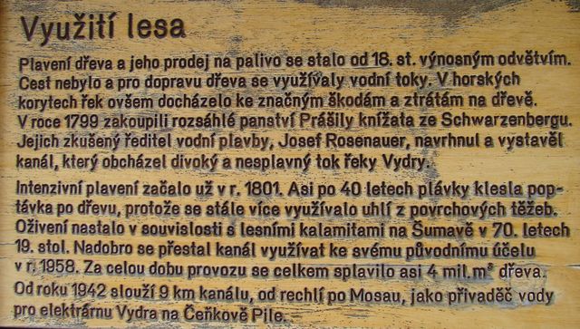 Okolí kanálu je harmonické a ani místo, kde obdivuhodné dílo inženýra Rosenauera přebralo od dravé řeky Vydry pravomoci k dalšímu chování části jejího toku, nevytrhne turistu z libých myšlenek a okouzlení.