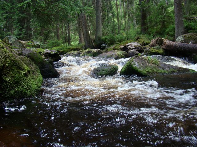 Zamračená obloha pomáhala vytvářet tajemnou krásu v okolí Roklanského potoka, kam jsme se z Modravy vydali, hnáni touhou uvidět jednu z nejkrásnějších šumavských partií.