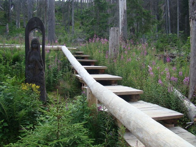 a pak vzhůru na Poledník červeně značenou cestou, teprve před pár dny ochranáři (do 30. září) otevřenou. Trasa je to zážitková, ale tomu asi uvěří jen ten, kdo si výstup k rozhledně zkusil