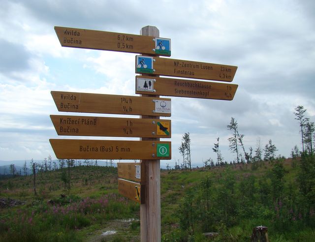 Konečně byl před námi vytoužený rozcestník na vrcholu Bučiny,